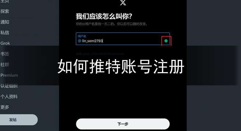 在填写完基本信息后,您需要选择一个用于登录和显示的用户名。这是您在推特上的唯一身份标识,因此要选择一个独特而个性的用户名。